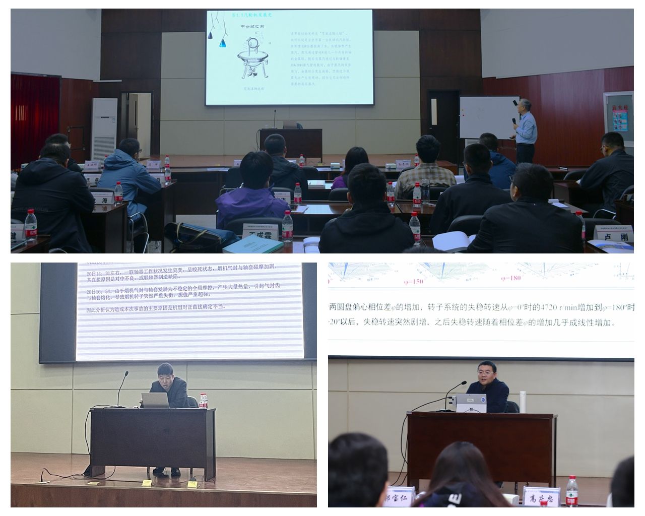开幕式后,东北大学机械工程与自动化学院教授马辉、原国网辽宁电力科学研究院有限公司汽机所长郭宝仁、沈鼓集团核电公司资深工艺专家李连海和我校能源与动力学院副教授张旭围绕故障模型建立、机理研究、故障诊断技巧、典型案例、动平衡技术实训等内容为学员进行了为期四天的培训,他们通过生动的案例、深入浅出的剖析、通俗易懂的语言为参训学员答疑解惑。
