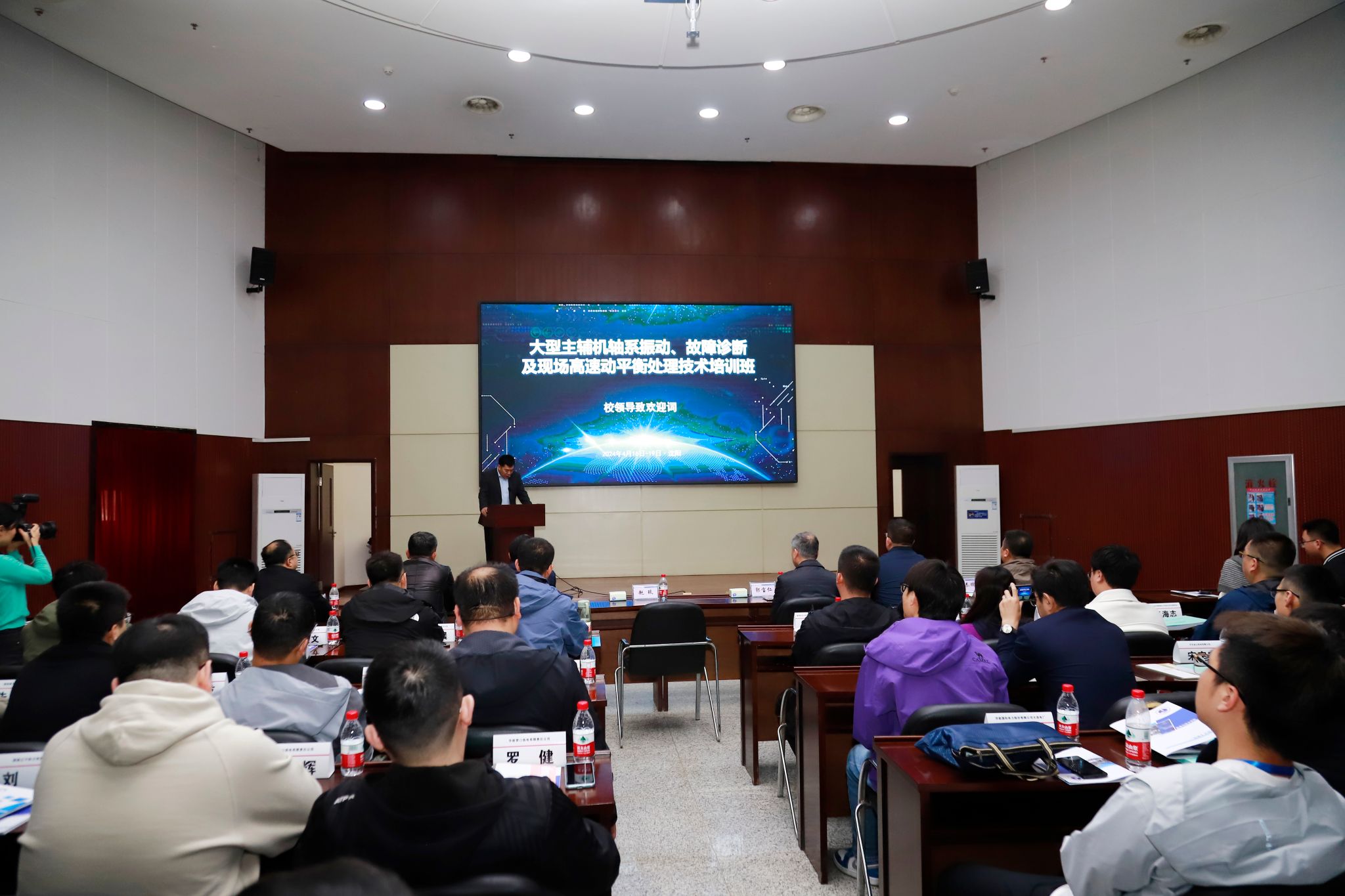 4月16至19日,由bat365中文官方网站专精特新产业学院主办,能源与动力学院、新能源学院承办的“大型主辅机轴系振动、故障诊断及现场高速动平衡处理技术”培训班在继续教育学院报告厅举行,我校副校长赵琰、原东北电科院高级工程师郭宝仁、东北大学教授马辉,我校产学合作中心主任王焕群、能源与动力学院及新能源学院相关教师出席开幕式。开幕式由我校能源与动力学院院长潘宏刚主持。