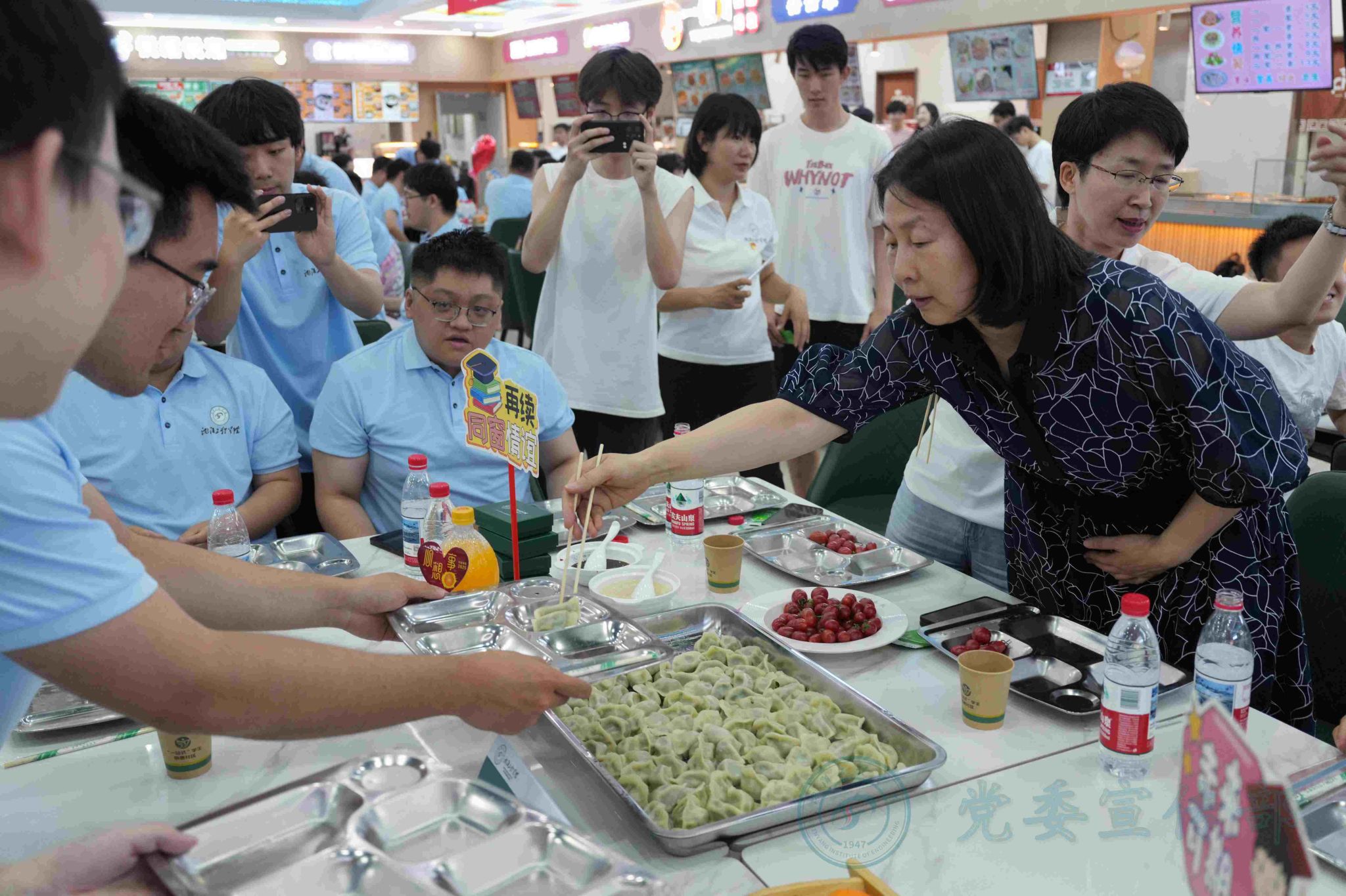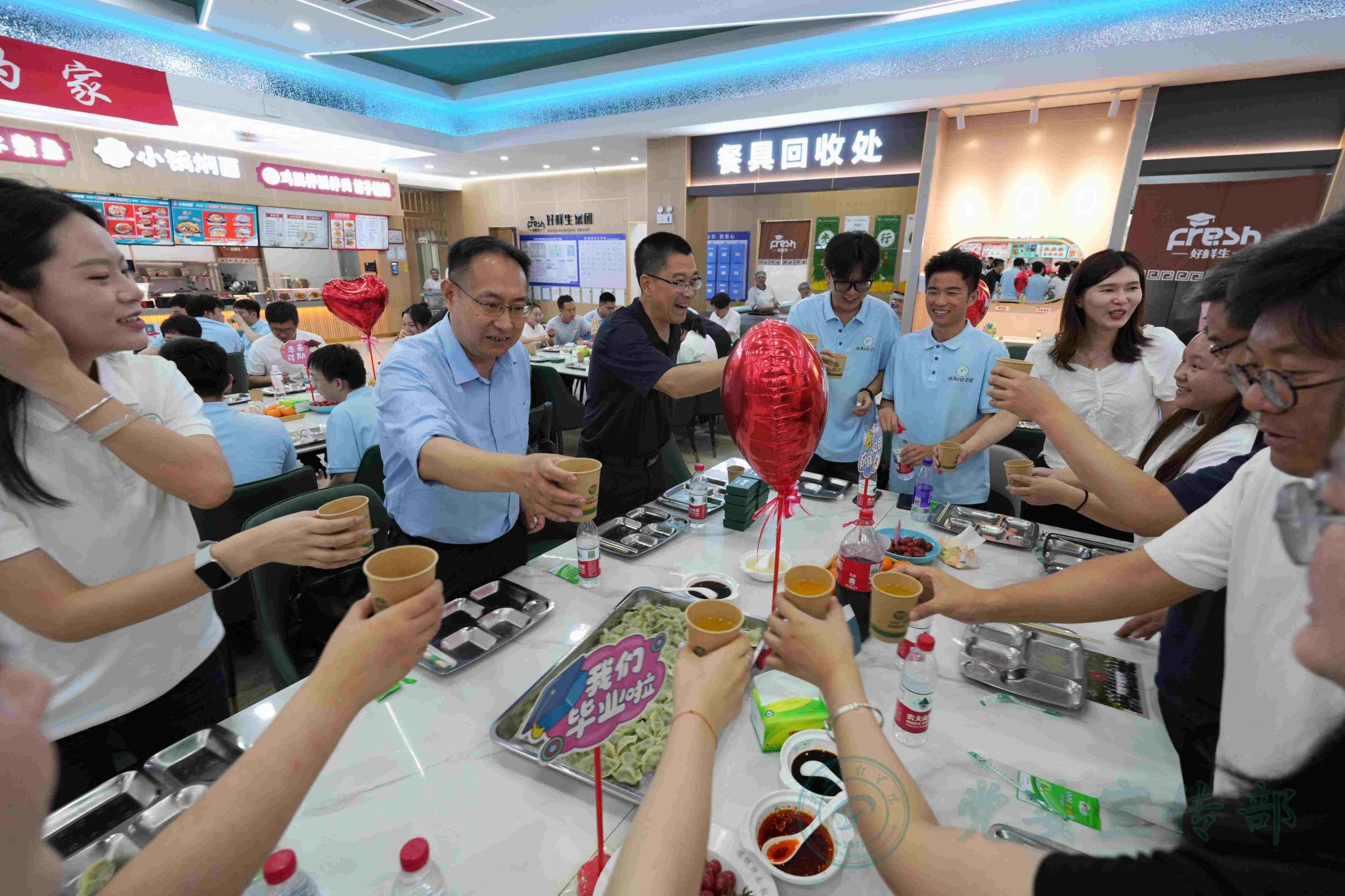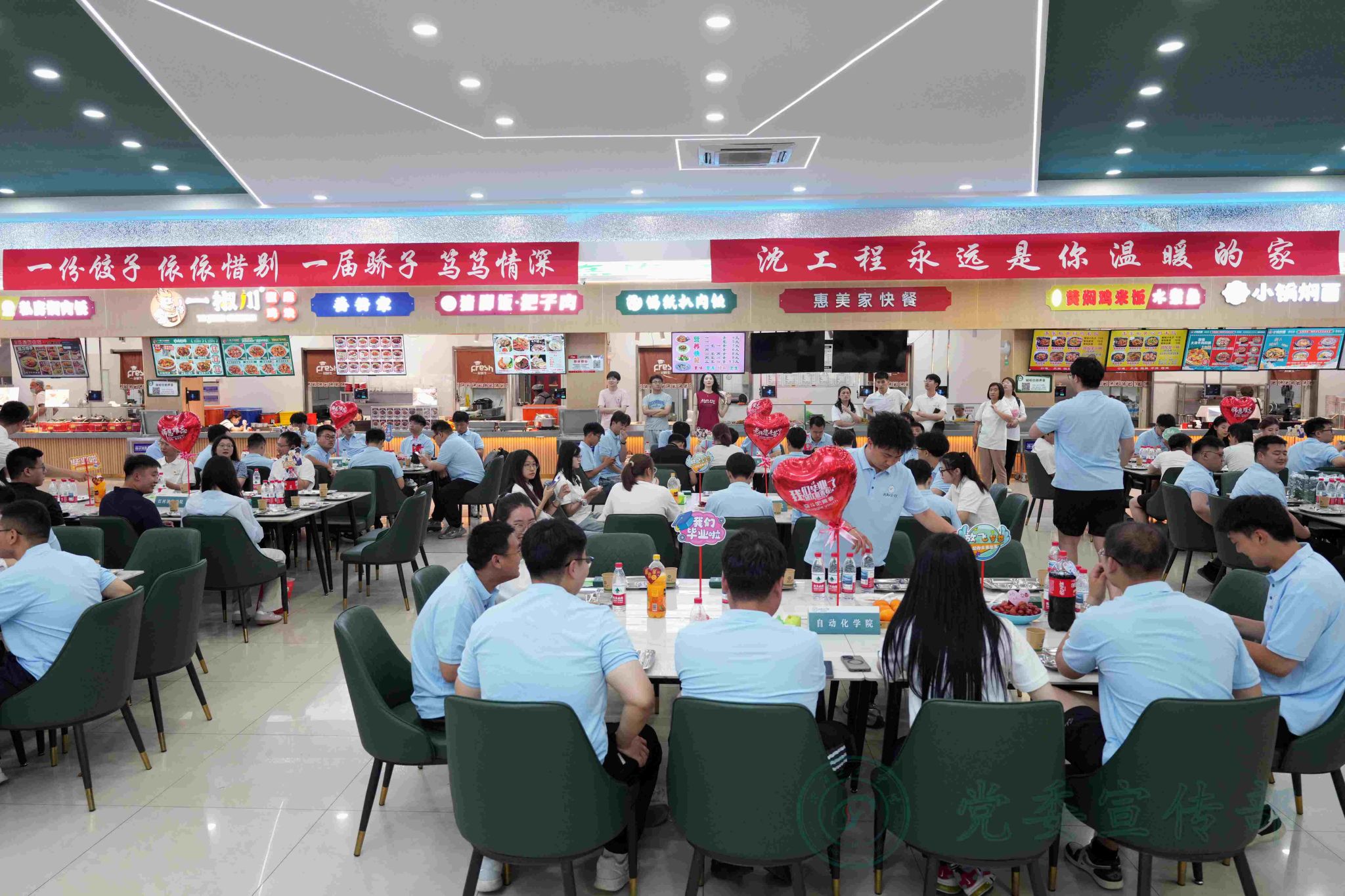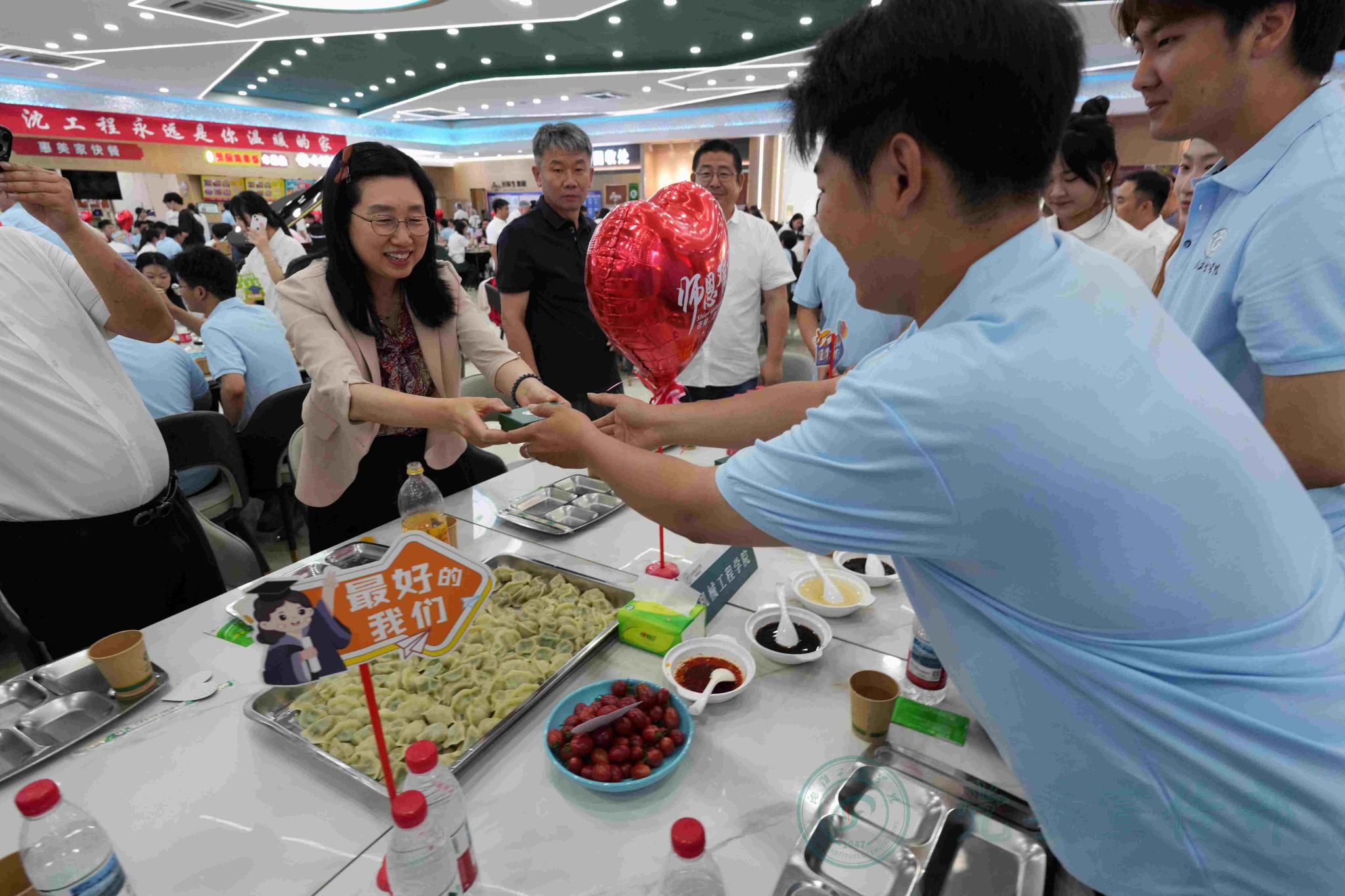 6月23日下午,“爱在沈工 家的味道”2025年毕业饺子宴送骄子活动在学校二食堂二楼举行。