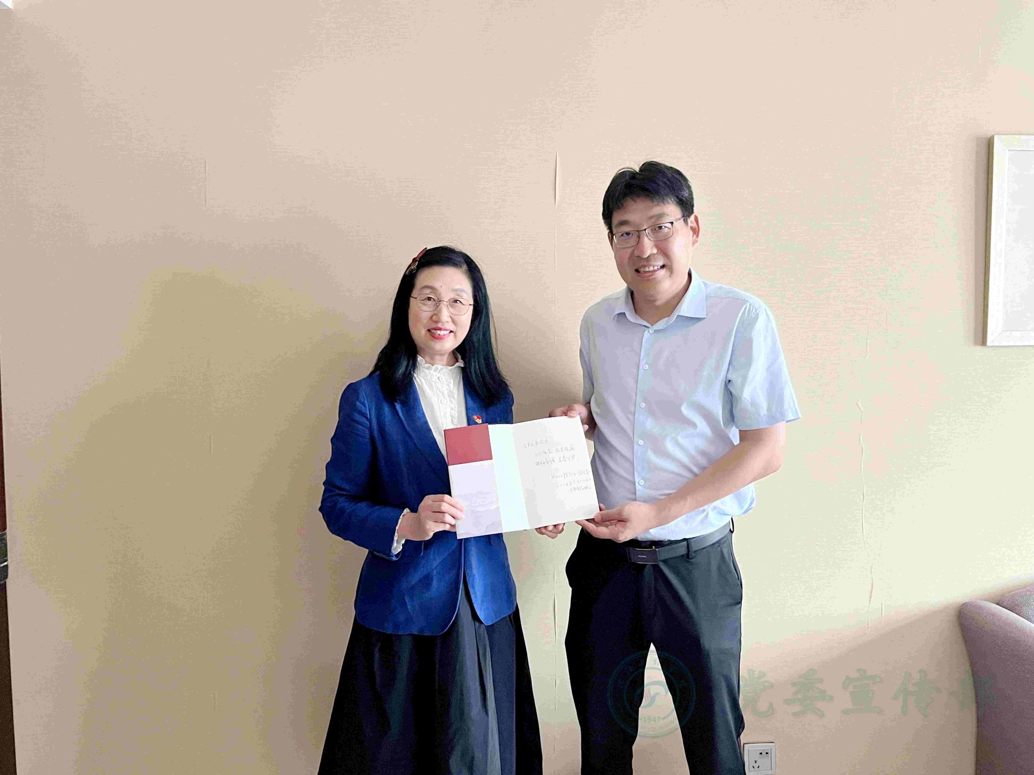方鸿志还与20余名校友深入交谈,高度肯定了他们在工作岗位中取得的优异成绩,勉励大家传承学校“红心向党,技术报国”的大学精神,为国家发展贡献力量、为母校增光添彩。同时,她向收录在《根脉——“红心向党 技术报国”课程思政教育实践》一书中的校友李延军、王勇赠书。