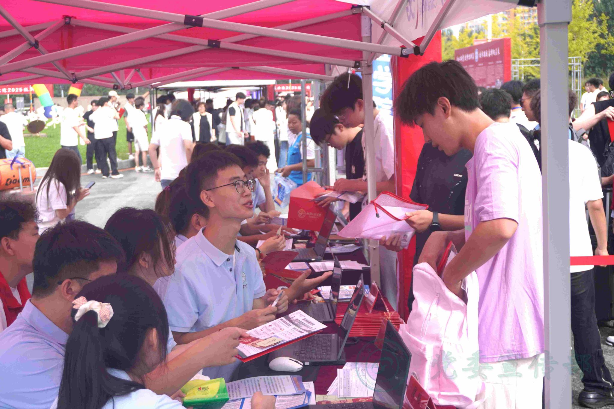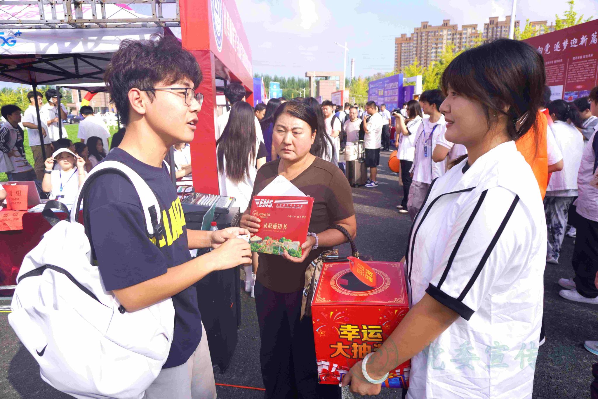 “一站式”服务显热情,让迎新更贴“心”。各学院班子、全体辅导员、班导师驻守迎新现场,给予新生和家长们热情周到的报到指导与服务,用最温暖的关爱助力新生全“新”启航,把“严在当严处,爱在细微中”的教育教学理念贯穿于迎新工作。学校各职能部门、各服务保障部门用暖心的服务迎新:为新生提供接站车、“迎新面”;积极联系周边宾馆,家长持录取通知书,可享优惠价入住;在体育馆搭设免费住宿帐篷,为新生家长提供免费、便捷的午休和住宿环境,彰显人文关怀。