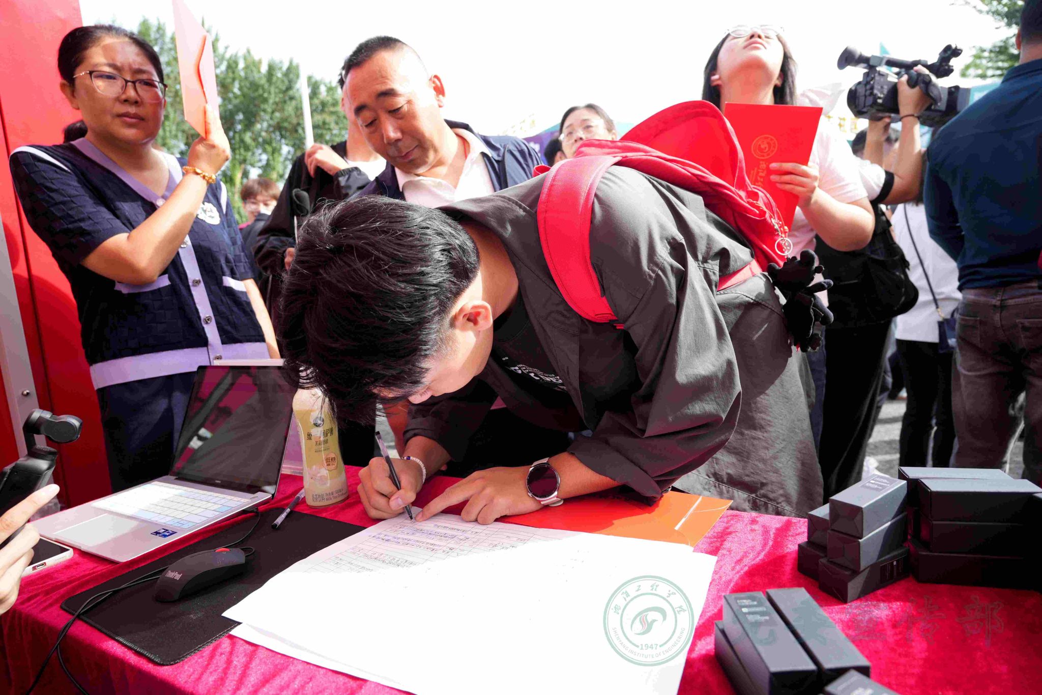 青春校园亮点多,科技创新更倾“心”。精心制作的学校2025级录取通知书3D立体展板为新生及家长提供免费打卡拍照点,定格初遇美丽沈工程的这一刻。各学院结合专业特色,精心布置迎新报到接待点,电气工程学院以品牌化的考研率、国家电网就业率吸引新生和家长驻足;能源动力与核技术工程学院特别邀请了“能核学院校友分会”的优秀校友参加迎新,并对新生开展校友榜样领航的入学教育;自动化学院为每一名新生准备了“迎新大礼包”,科技感十足的智能巡检机器人、无人机在现场频频互动;机械工程学院精心为新生准备了一份“入学成长手册”;计算机科学与技术学院重点推出了荣获10项大学生创新创业竞赛大奖的科技作品;新能源学院/专精特新产业学院围绕学校绿色低碳理念展示了大学生“双碳”项目作品和参与研发的陆地巡检仪;经济管理与法学院围绕“家”主题为新生准备了“入学伴手礼”,里面有自编印制的一份英语四级和高等数学学习的学霸笔记;国际教育学院为新生准备了非遗漆扇体验和学业成长规划明信片;红河国际学院外籍教师全员参加迎新,让新生们体验国际文化交流;理学院为每名新生准备了一份“锦理大礼包”,里面有一份理学院自编印制的高等数学学习宝典、一件文创T恤衫和一个锦鲤吉祥物。