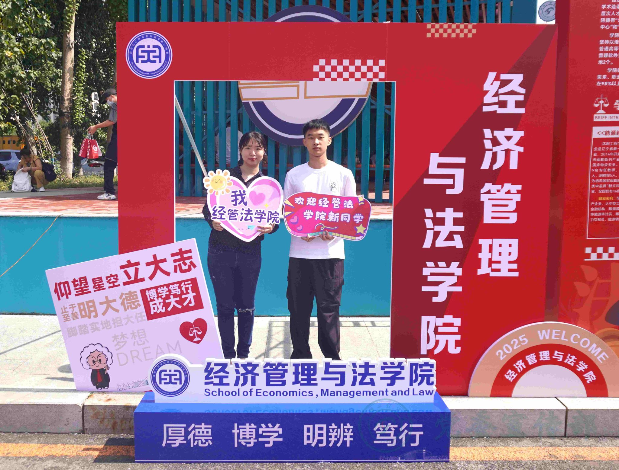 五彩缤纷的迎新展板和热情洋溢的师生汇聚成一道道靓丽的风景线,热烈的迎新氛围弥漫在校园的每个角落。至此,沈工程2025级学子开启了人生新征程。