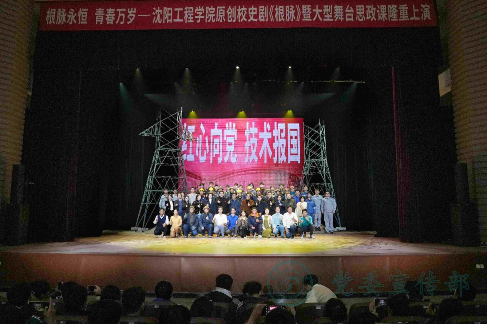本场演出不仅是一场艺术盛宴,更是一堂沉浸式思政大课。原创红色校史剧《根脉》作为学校“三全育人”的重要载体,通过艺术化呈现学校发展历程中的红色基因和奋斗精神,实现了思想政治教育与艺术教育的深度融合。该剧以学校“红心向党,技术报国”的大学精神为内核,让学生在艺术熏陶中,深化思想引领,提升综合素质,增强实践能力,厚植家国情怀。通过再现校史中的典型人物和重大事件,强化理想信念教育,引导学生将个人成长融入学校发展与国家命运之中,这种“以美育人、以文化人”的创新实践,充分展现了学校在新时代思想政治教育中的探索成果,为培养担当民族复兴大任的时代新人提供了生动范例。