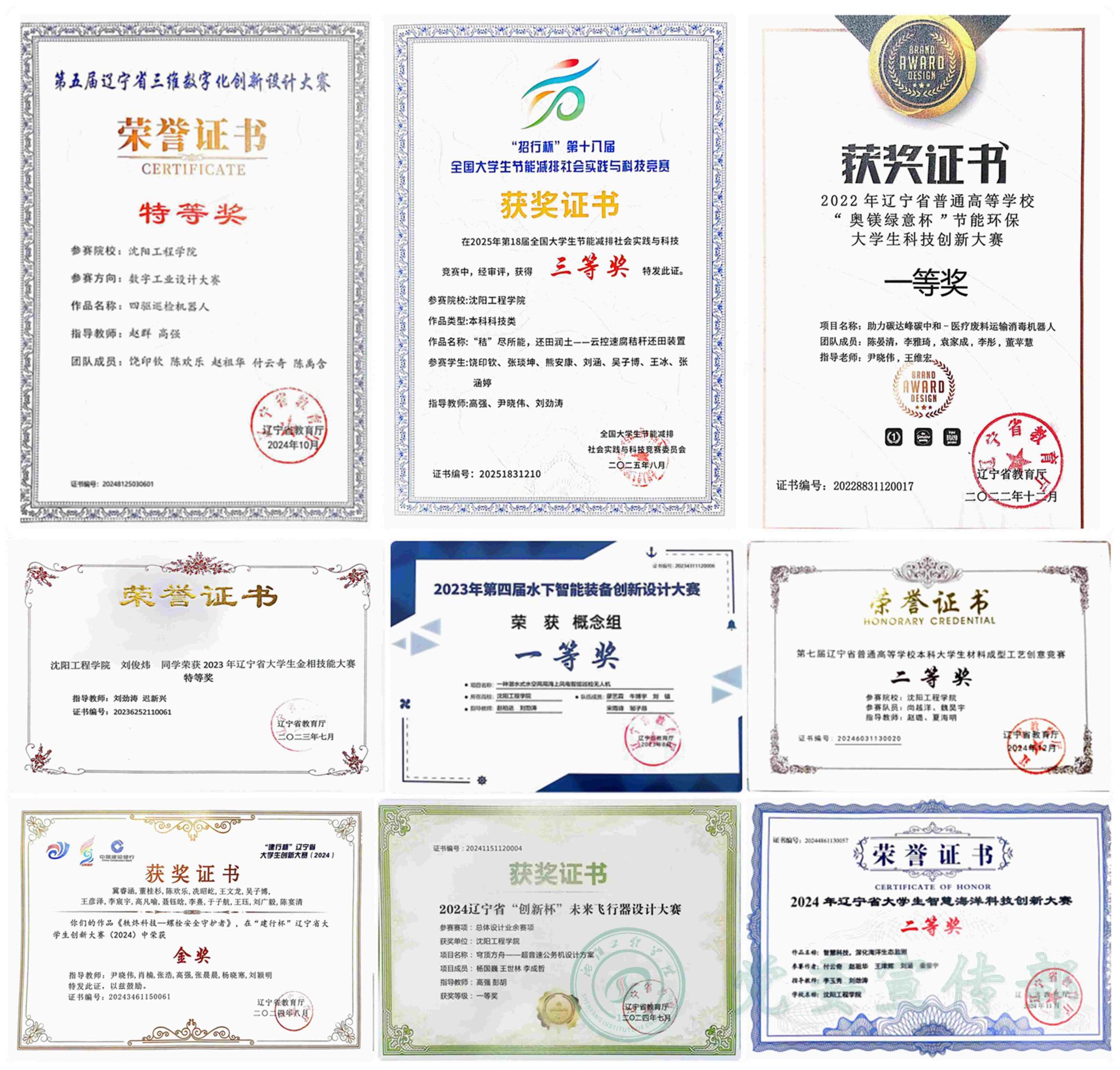 在全国金相技能大赛、先进成图技术大赛、机械创新设计大赛等赛事中获省级以上奖项近百项。
