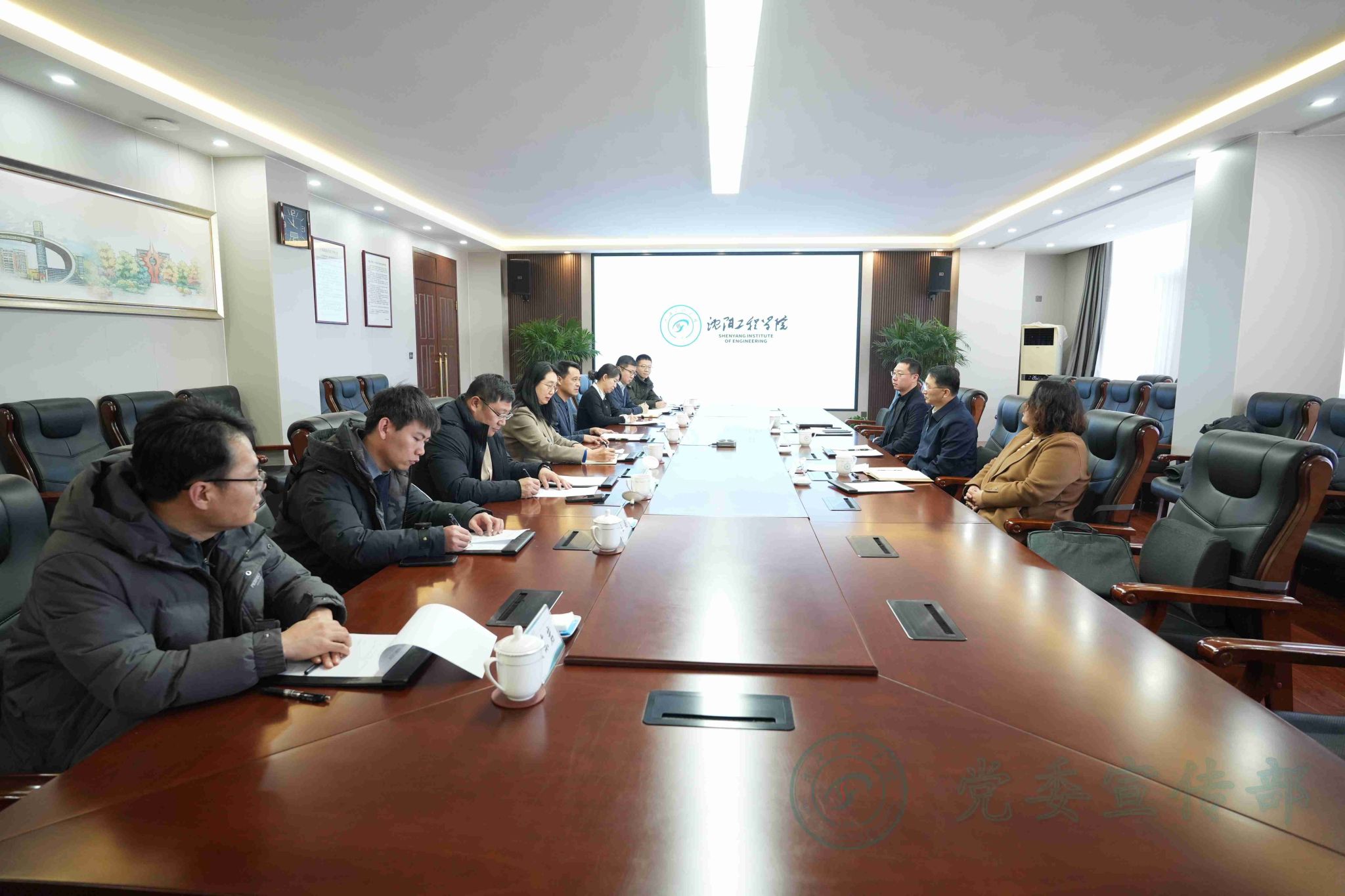方鸿志代表学校对李显通一行表示热烈欢迎,介绍了学校近年来围绕服务国家“双碳”战略、助力辽宁振兴,在就业工作、人才培养供需适配机制改革试点等方面的整体情况与特色做法,重点汇报了促进毕业生留辽就业、服务能源电力行业等成效。