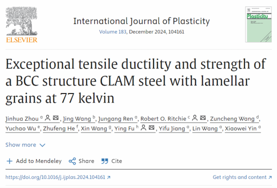 时隔一年,我校机械学院教师周金华博士再次以我校为第一单位,联合美国加州大学伯克利分校Robert O. Ritchie教授、松山湖材料实验室付莹研究员和上海交通大学、鞍钢集团有限公司、深圳务实研究院和沈阳工业大学等研究机构学者在塑性顶刊《International Journal of Plasticity》发表重要研究成果。