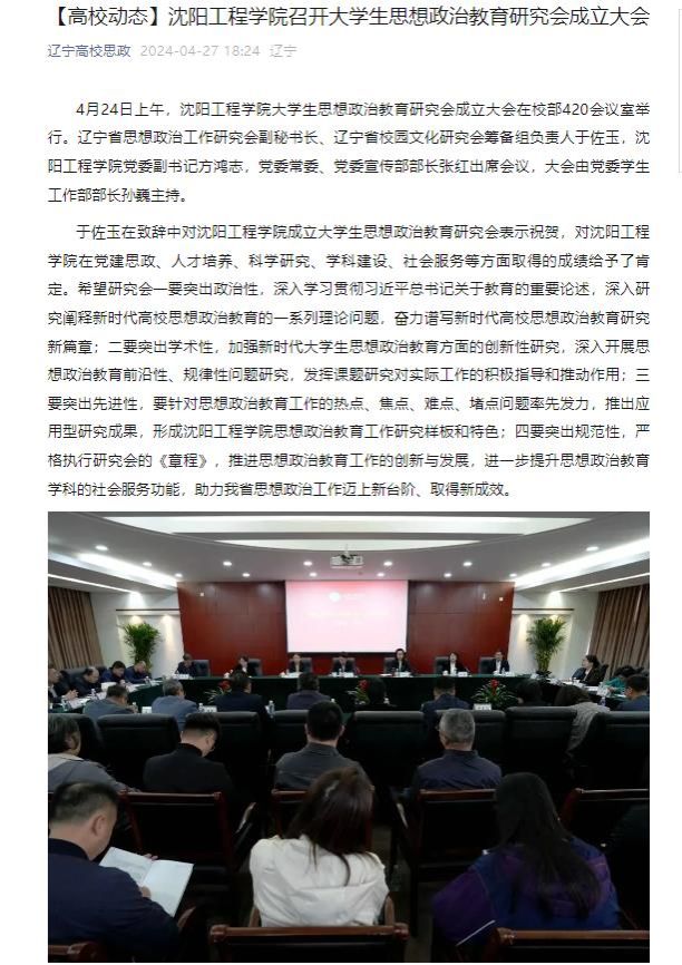 编者按:4月27日,辽宁高校思政以“bat365中文官方网站召开大学生思想政治教育研究会成立大会”为题,就我校成立大学生思想政治教育研究会成立一事进行专题报道。现将报道原文转载如下: