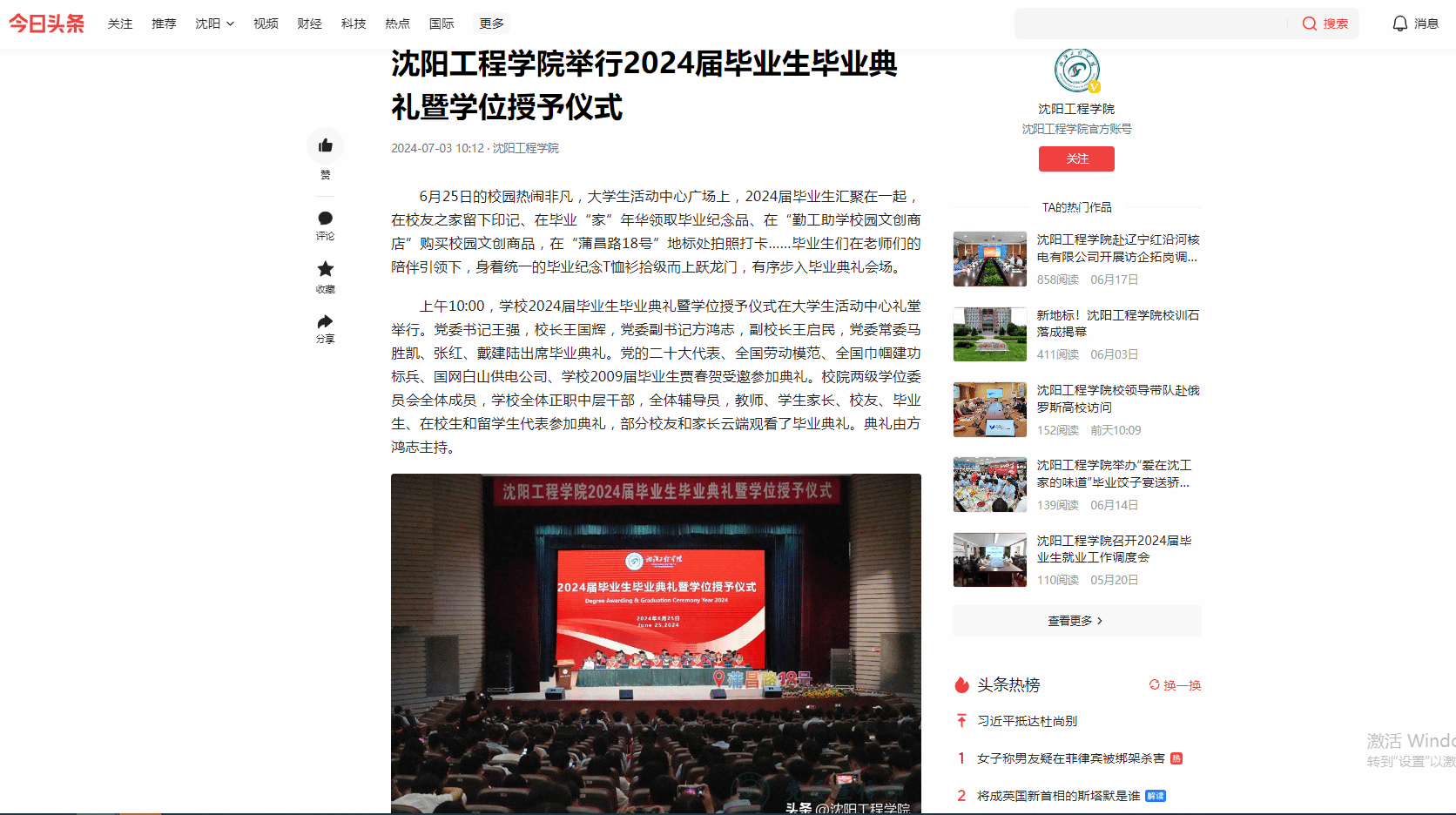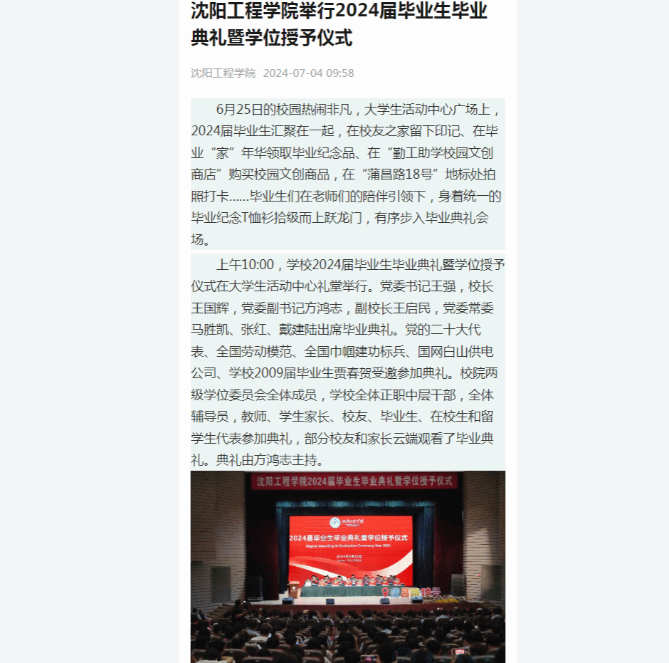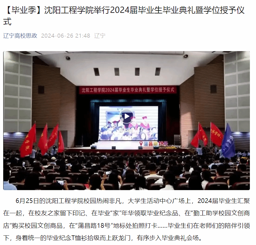 编者按:近日,人民日报人民号、今日头条、辽宁日报辽望号等多家媒体以“bat365中文官方网站举行2024届毕业生毕业典礼暨学位授予仪式”为题进行宣传报道。现将报道原文转载如下: