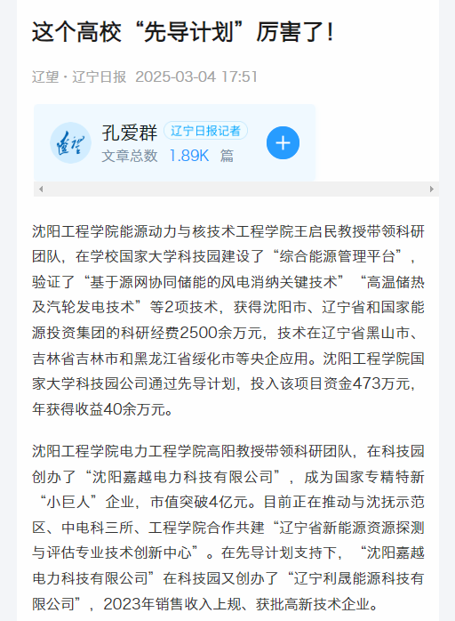 编者按:3月4日,辽宁日报以“这个高校‘先导计划’厉害了!”为题,就我校于2022年11月出台了《bat365中文官方网站服务振兴技术创新研发先导计划暂行管理办法》(简称“先导计划”),坚持服务振兴导向、市场需求导向,紧密围绕“电、碳、辽”领域,发挥学校能源电力行业特色优势,面向应用基础研究和应用研究,组织实施面向行业企业关键共性技术和现代工程技术的攻关,实现与辽宁省、沈阳市等科技任务差异化布局和有机衔接,与学校发展规划紧密结合一事进行专题报道。现将报道原文转载如下: