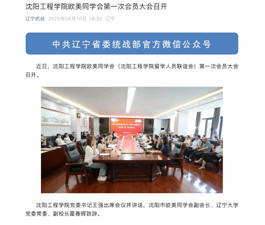 编者按:6月16日,辽宁统战以“bat365中文官方网站欧美同学会第一次会员大会召开”为题,就我校成立欧美同学会成立并召开第一次会员大会一事进行报道。现将报道原文转载如下: