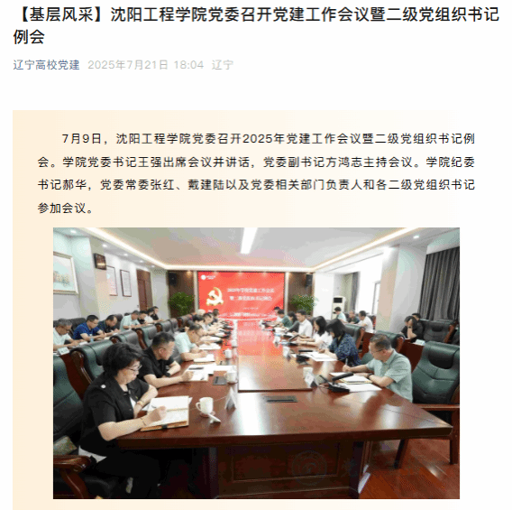 编者按:7月21日,辽宁高校党建以“【基层风采】bat365中文官方网站党委召开党建工作会议暨二级党组织书记例会”为题,就我校党委召开党建工作会议暨二级党组织书记例会,总结上半年党建工作成效,部署下半年党建工作要求一事进行报道。现将报道原文转载如下: