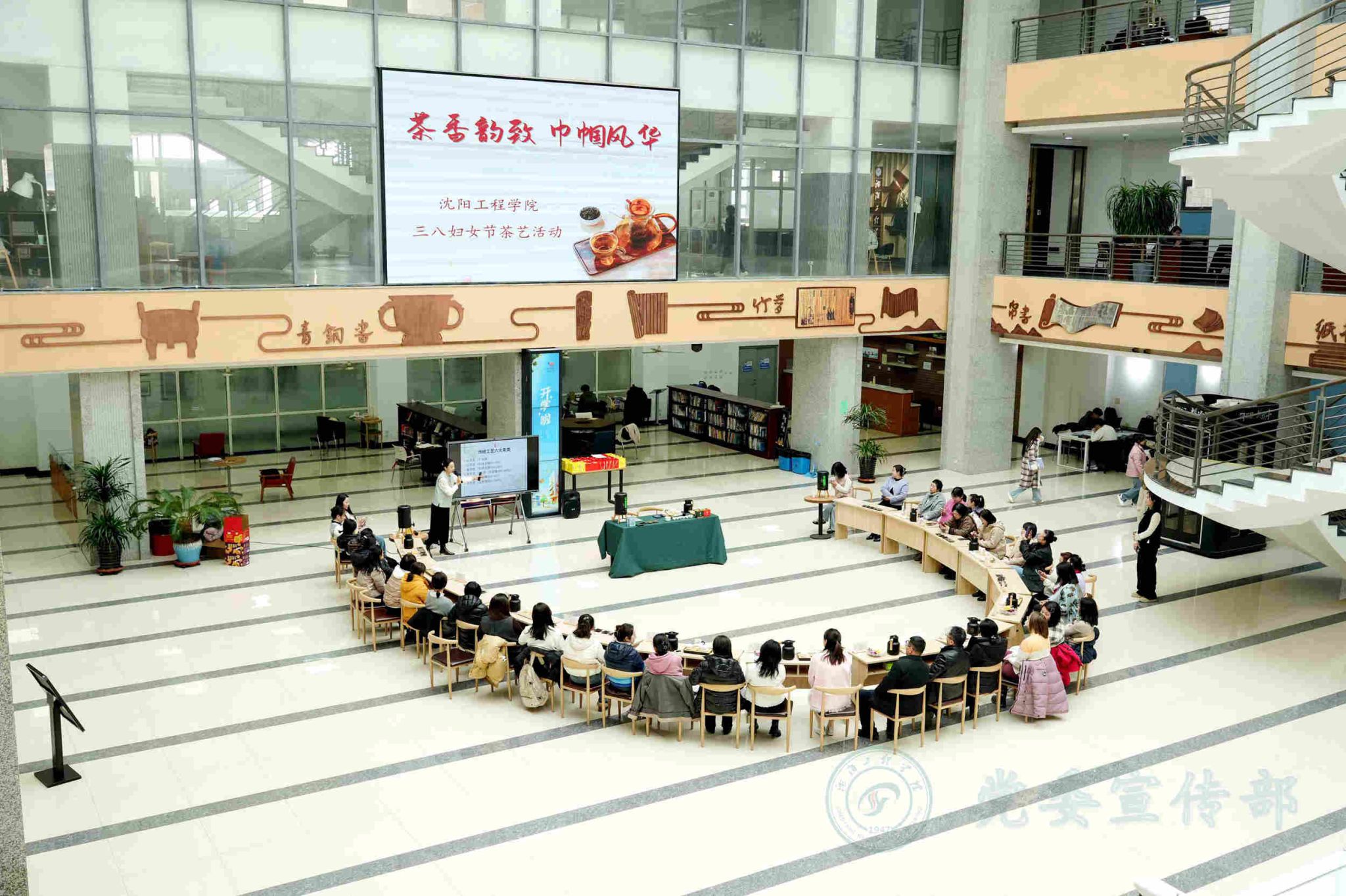 岁月清浅,茶韵悠长。在“3·8女神节”翩然而至之际,为弘扬中华传统茶文化,提升文化素养,让女教职工度过一个温馨且富有意义的节日,3月5日,校工会在图书馆一楼大厅举办了“茶香韵致 巾帼风华”茶艺活动。受邀参与此次活动的有各分工会女性主席、女工委员等50余位女教职工。