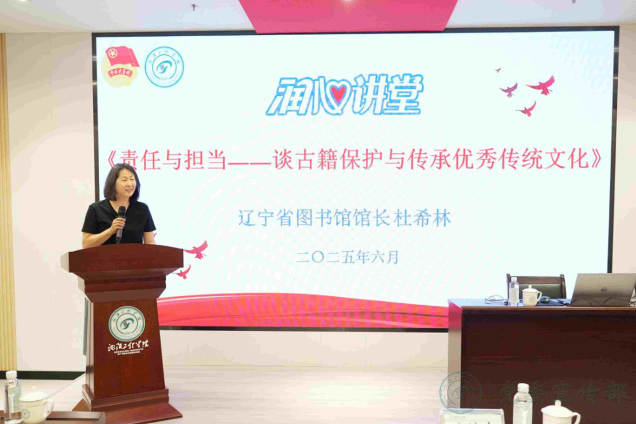 辽宁省图书馆馆长、辽宁省古籍保护中心主任杜希林以“责任与担当——谈古籍保护与传承优秀传统文化”为主题,与师生们展开了一场跨越时空的文化对话,带领师生“以古鉴今”,探寻中华文明的深邃智慧与多元魅力。学校党委常委、党委宣传部部长张红主持活动,百余名师生代表参加活动。