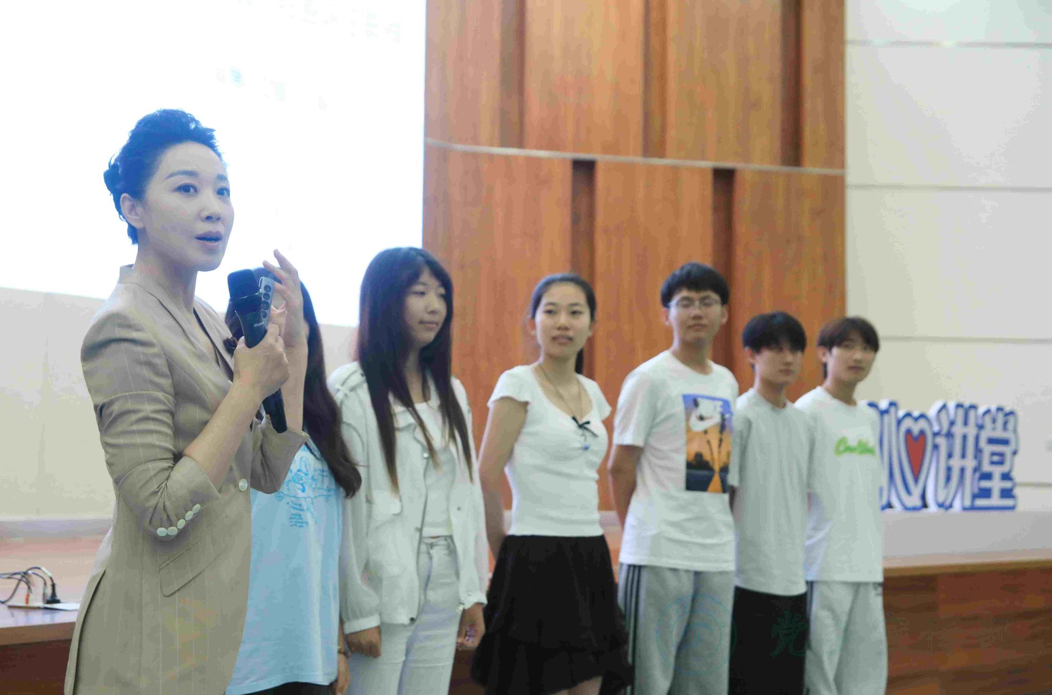 在互动环节中,宫正对同学们反映出的社交礼仪问题进行逐一指导,并以身示范,向同学们生动形象地展示了文明社交的礼仪规范和互动技巧。