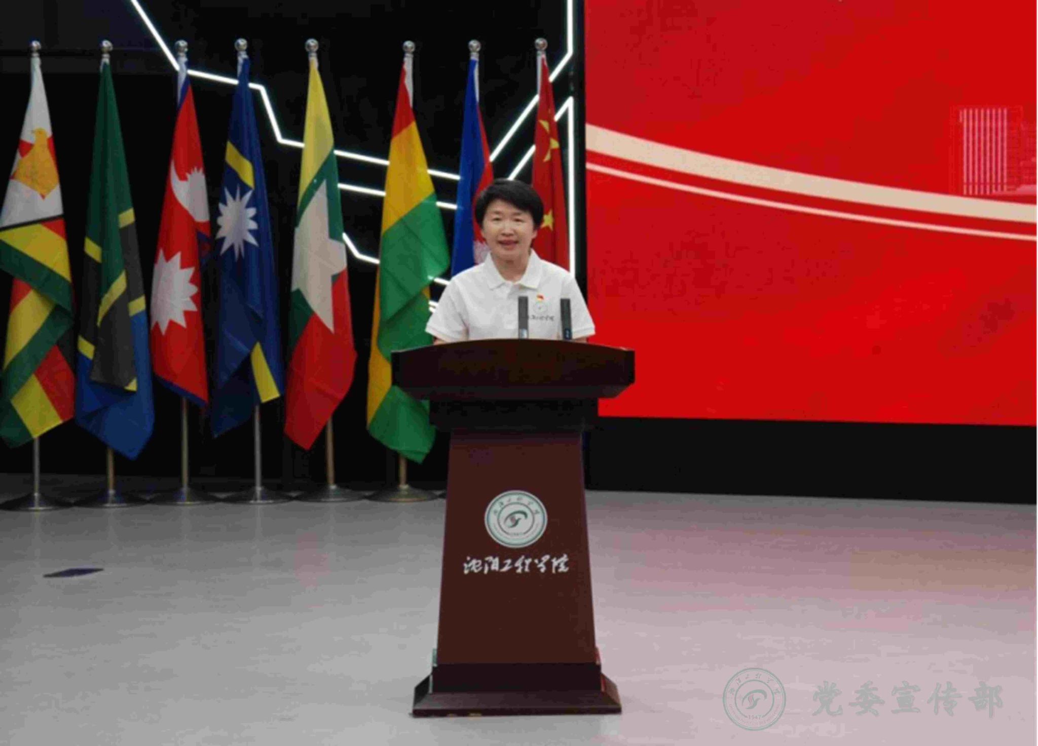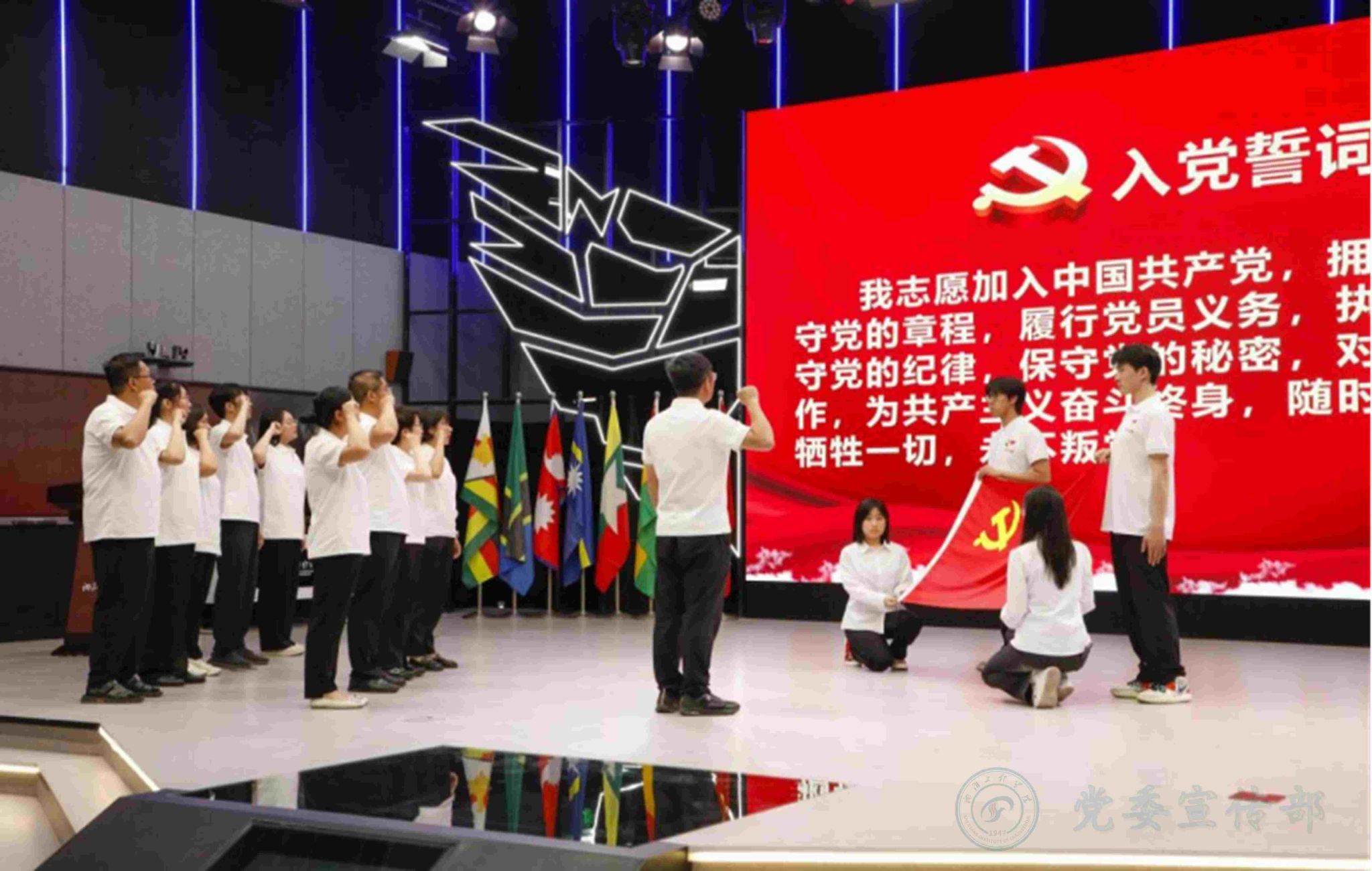 在国际教育学院副院长辛会元的带领下,全体教师党员面向党旗重温入党誓词。铿锵有力的誓言回荡在会场,激励着每一位党员牢记身份、恪守承诺,永葆共产党人的政治本色。