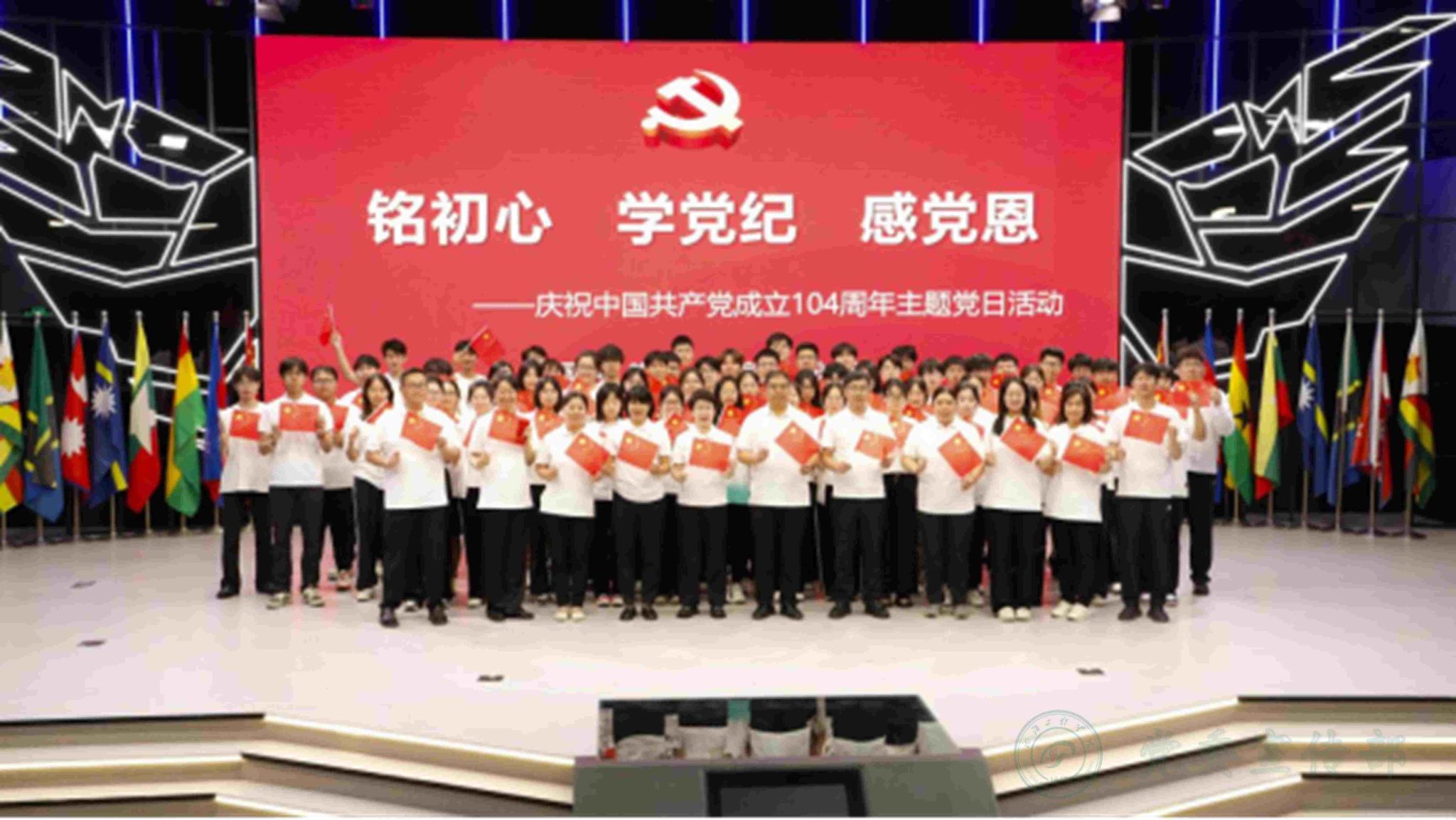 为庆祝中国共产党成立104周年,推动深入贯彻中央八项规定精神学习教育走深走实,6月25日下午,国际教育学院党总支在数字化教育基地举行“铭初心 学党纪 感党恩”庆祝中国共产党成立104周年主题党日活动。学院全体教师及学生党员代表参加活动。